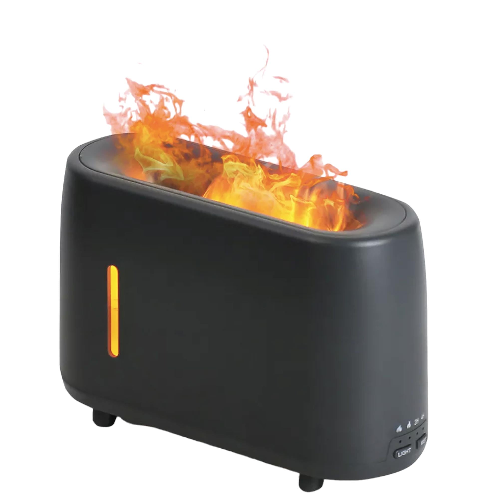 This 240ml ultrasonic electric air mist ultrasonic humidifier with a flame style mist design is used for aromatherapy by diffusing essential oils and mist into the air. Remote controlled, the diffuser is useful as a night light featuring bright orange LEDS that replicate a flame style mist.