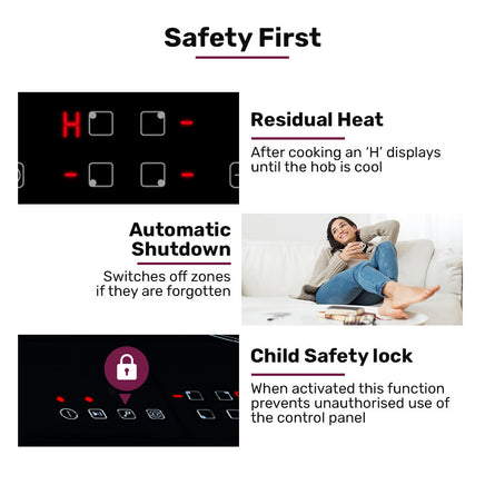 For ease of mind, the EuroChef cooktop has a timer, built-in Child-Lock function, Residual Heat Indicators and an Automatic power off function that switches off the zones if forgotten. And, the Pause function is handy in the event of any unexpected interruptions.