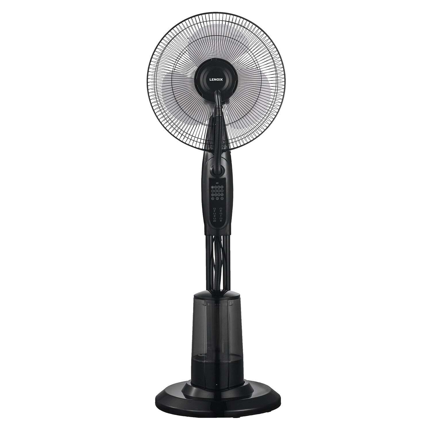 - 40cm Misting Pedestal Fan, touch buttons and indicator lights on control panel, full remote control with 5 metre range, 3-speed fan, 3-mode wind adjustment, tinted transparent water tank, empty water tank indicator light, 220mL of mist per hour, oscillation option, large airflow delivery, 7.5 hour timer, standing pedestal base, sturdy base, 1.2m fixed height, safety fan guard, perfect for home or small office use