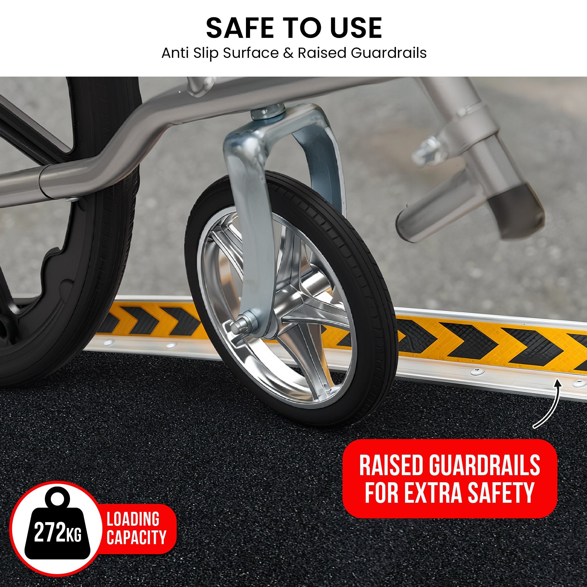 Make mobility simpler with the Kartrite foldable aluminium wheelchair ramp. Designed for wheelchairs, scooters and rollators, it provides safe access to steps, kerbs or vehicles. Its suitcase-style fold makes it easy to carry and store, while the anti-slip surface and raised side rails add security. Built from high-strength aluminium, it supports up to 272kg, offering reliable use at home or outdoors