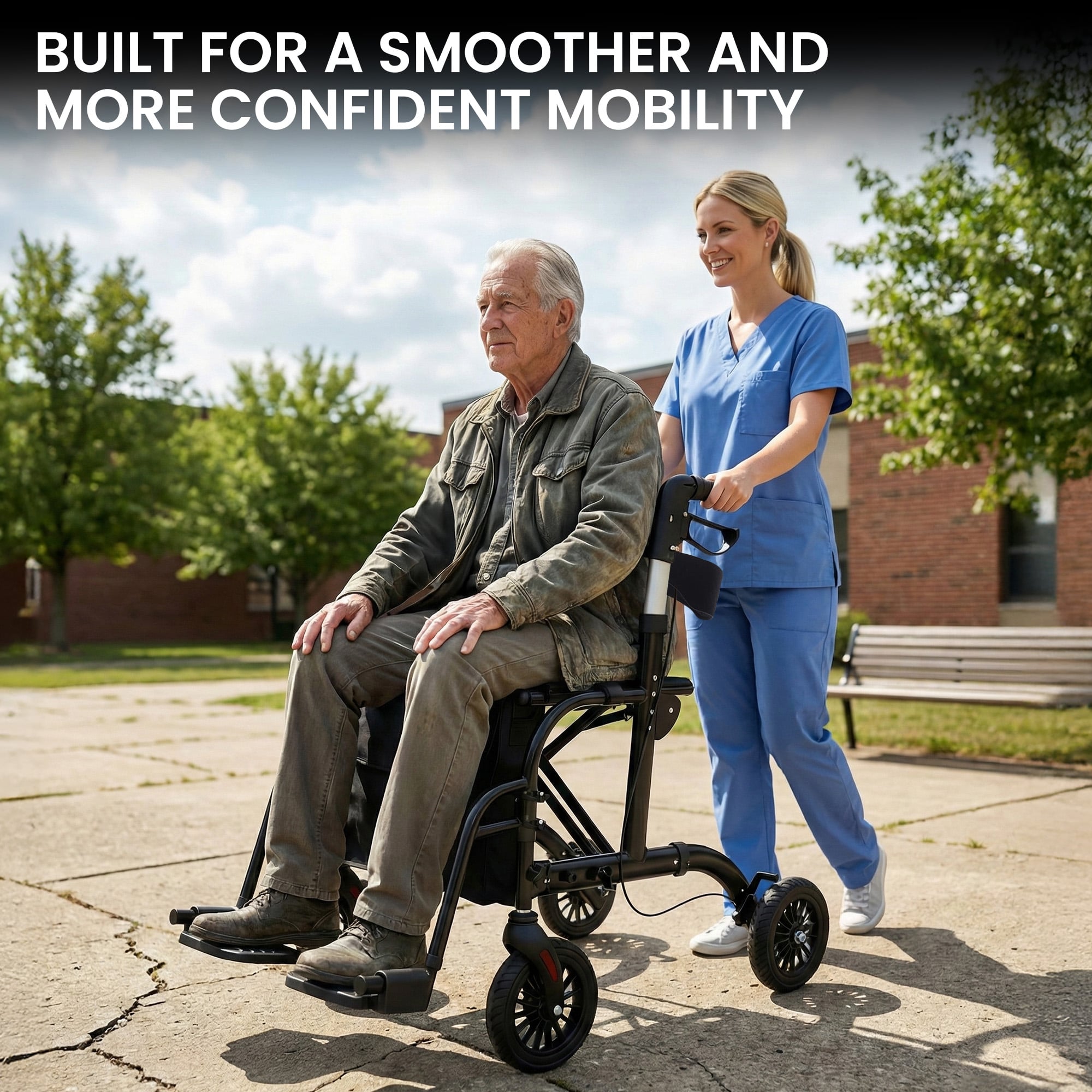 Sometimes the right mobility companion is the one that adapts to your day without slowing you down. The Orthonica Rollator Wheelchair combines steady walking support with a comfortable seated option in a lightweight aluminium frame that folds easily for travel or storage. Four smooth rolling 20cm wheels offer stable movement indoors and on gentle outdoor paths while the firm seat and 180° flip back backrest provide reliable comfort whenever you need a break. Height adjustable handles help promote better posture and tailored support, making this versatile design ideal for everyday independence.
