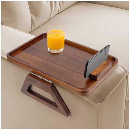 - Spring-Loaded Versatility: Features spring hinged arms that securely hug your sofa's armrest, ensuring stability for your drinks and snacks without slipping.