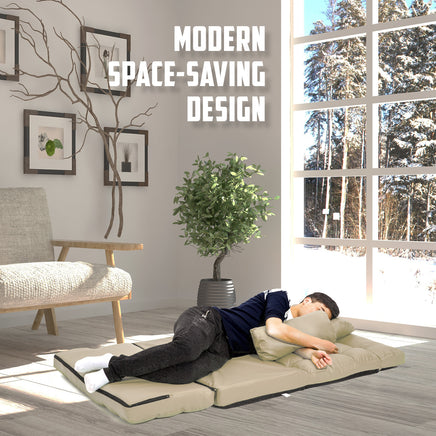 La Bella Double Seat Couch Bed 2 Seater Folding Sofa Chair Gemini Recliner Futon Leather - Beige