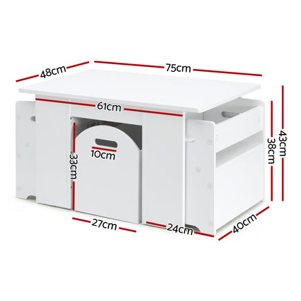 Made from eco-friendly MDF board, the entire ensemble is designed to last and be child-safe in every way with non-toxic white paint, round corners and smooth edges. Better still, the chairs and storage box can be use independently anywhere. Giving you more options for their use and practicality.