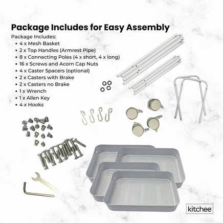 Kitchee 4-Tier Kitchen Storage Cart with Lockable Wheels will keep your home or office organised with this versatile rolling storage trolley. Featuring durable metal mesh moulded shelves, smooth-rolling caster wheels, and a lightweight steel frame, it’s ideal for use in the kitchen, bathroom, bedroom, office, or anywhere you need extra storage.