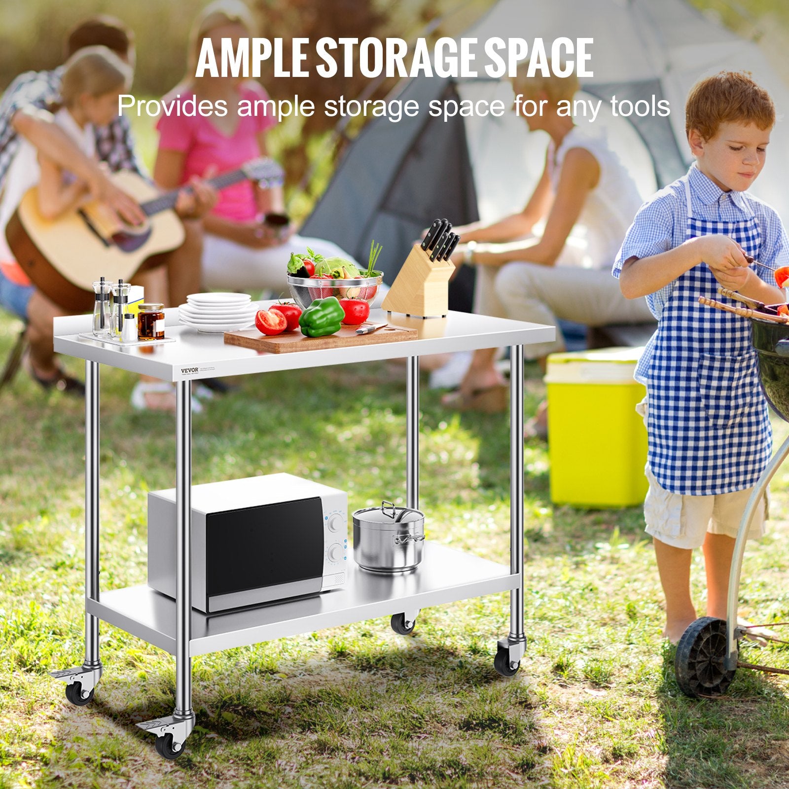 Beyond storage, our table can be used for chopping vegetables, kneading dough, cutting meat, and other kitchen-related tasks. It is perfect for use in bars, restaurants, hotels, buffets, catering events, school activities, or office break rooms.