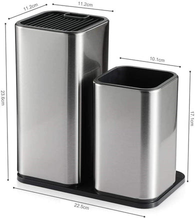 • Two-in-one kitchenware storage box: Freely inserting knife holder for 12 knives (maximum 20 cm blade), a pair of kitchen scissors and a kitchenware storage bucket (used to store other tableware), suitable for almost all sizes and shapes Knives, such as meat cleavers, chef's knives, steak knives, bread knives, vegetable knives.