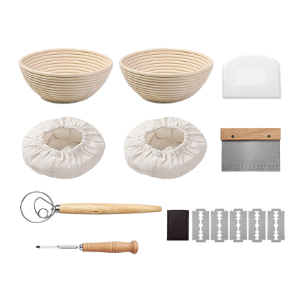 Together, these high-quality tools and basket ensure that you're equipped to create your best loaf yet. Say goodbye to guesswork and hello to consistent, professional-quality results every time you bake. Experience the joy of homemade bread like never before with our Bread Proofing 9-Inch Basket Kits.