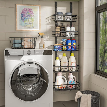 • HEAVY-DUTY METAL MATERIAL: This upgraded door storage organizer is made of strong and resistant metal material, the surface with a high-quality black powder-coated, which is waterproof and rustproof, easy to clean. The hanging baskets are also good in load-bearing & stability, it holds 10 kg per rack and 40 kg on 4 tiers. Comes with 4 suction cups and 4 strong adhesive EVA pads, can be firmly fixed on the door to enhance stability, prevent scratching and swaying when opening or closing.