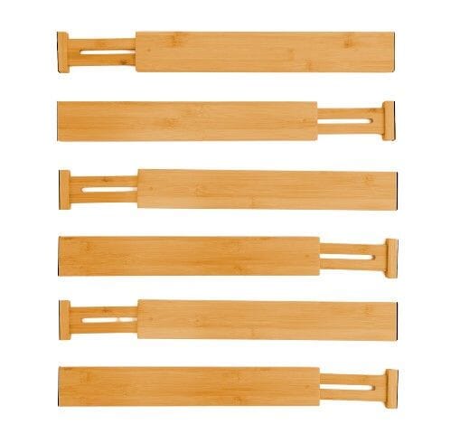 6 Pack Bamboo Adjustable Kitchen Drawer Dividers (Large, 44-55 cm)