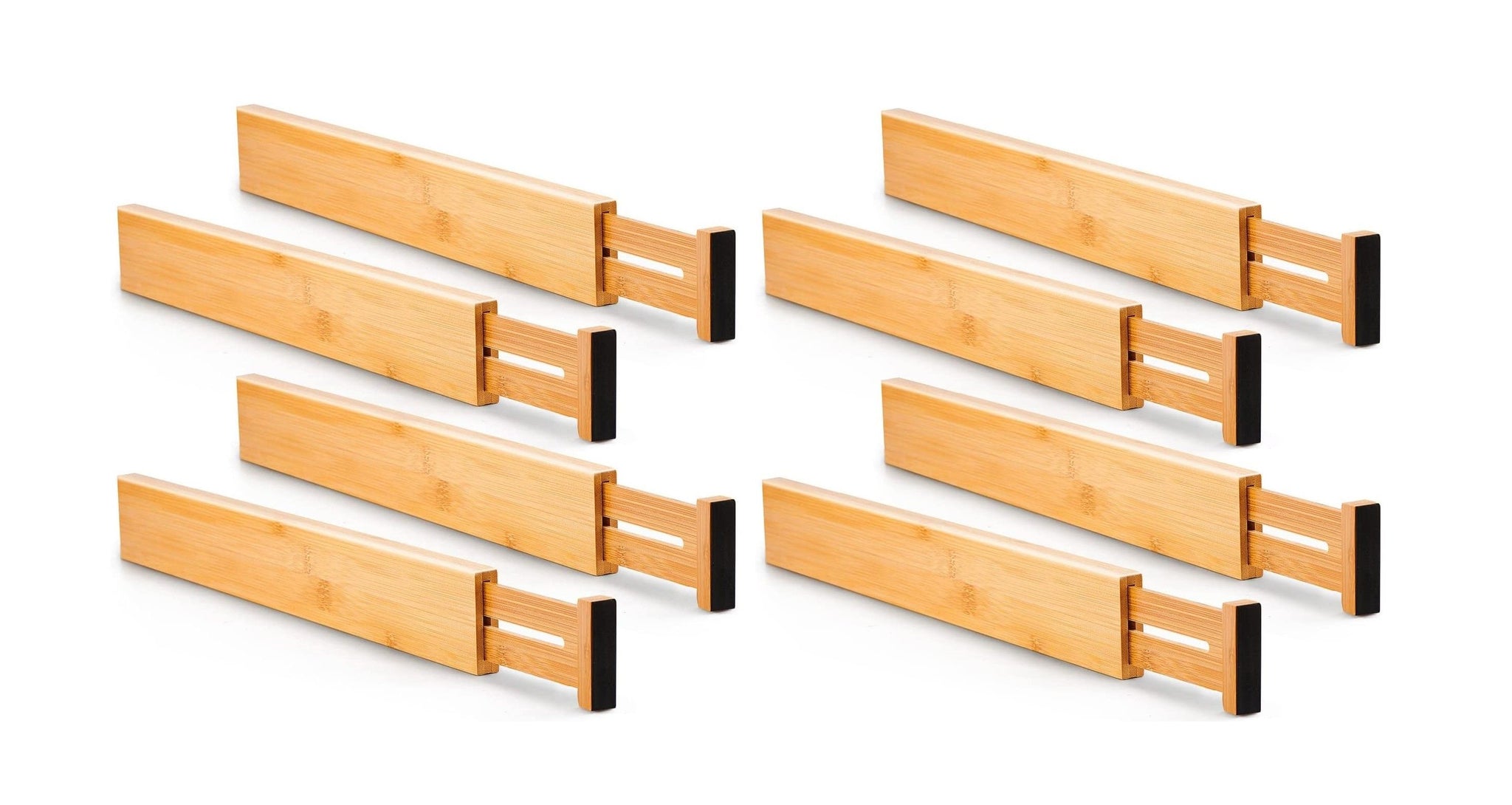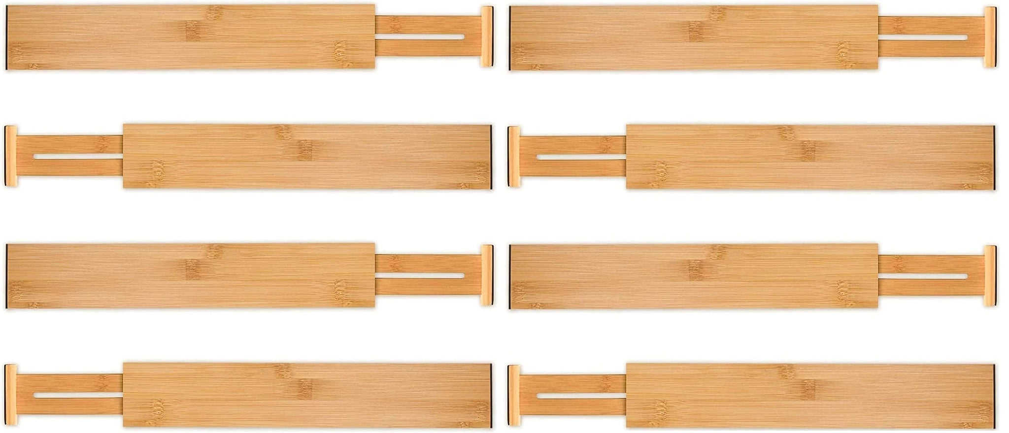 8 Pack Bamboo Adjustable Kitchen Drawer Dividers (Large, 44-55 cm)