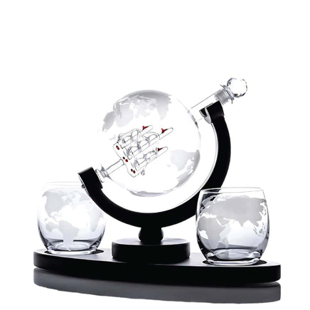 - Artistic Design: The decanter holds a meticulously detailed antique ship inside a hand-blown globe. Each glasses features detailed globe etchings, adding a touch of sophistication and style to your home bar.
