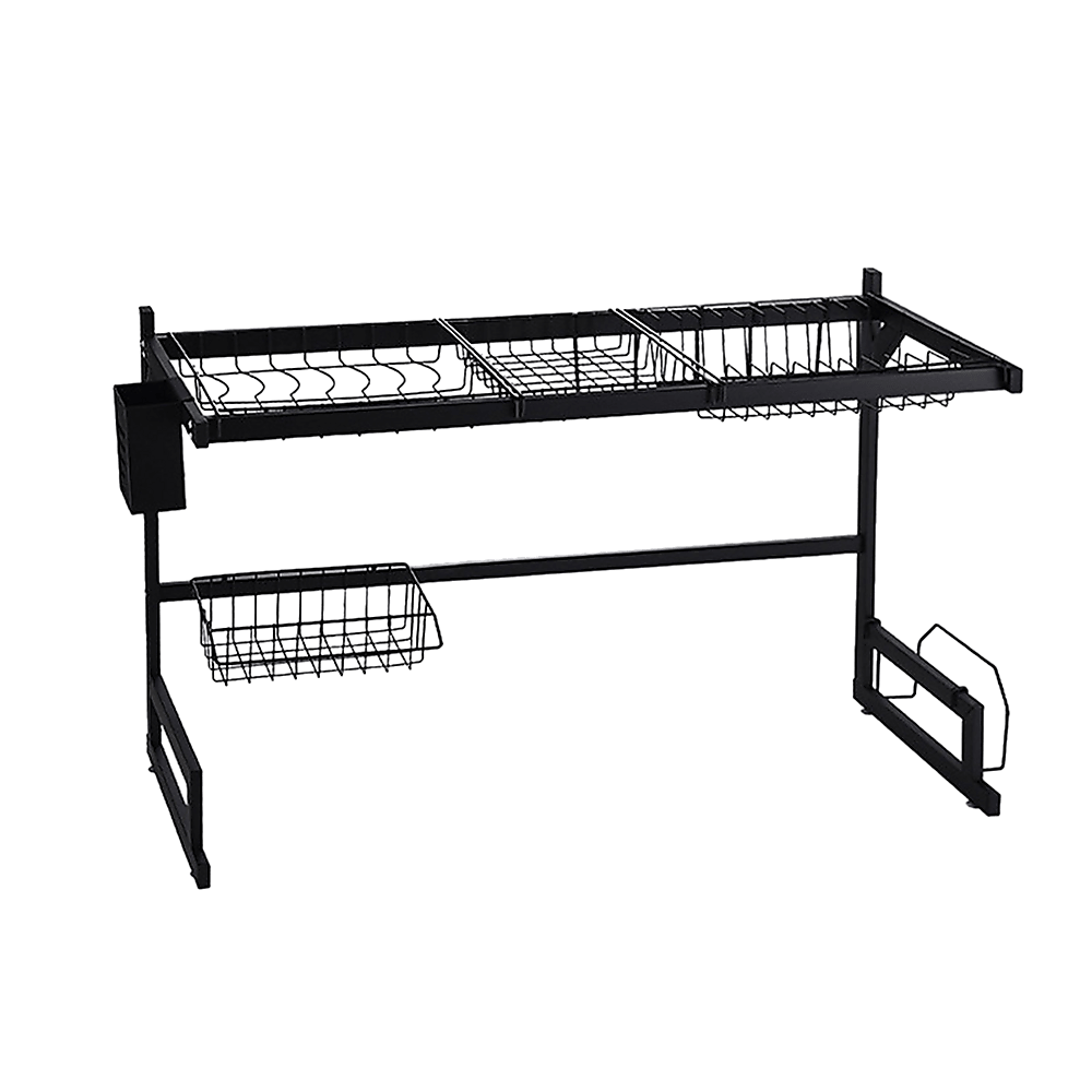 Organise your kitchen and save on space with Randy Travis Machinery's over-sink dish drying rack. A two-tier rack made from water-resistant coated steel, the rack tidily stashes crockery, cutlery, detergent and cleaning materials, as well as incorporates a compartment for fruit and veg storage.