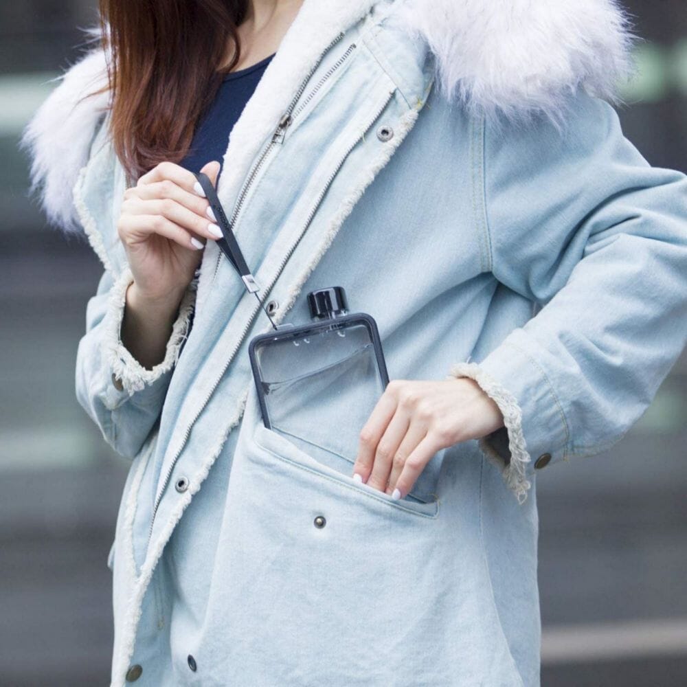 0LIGHTWEIGHT & FASHIONABLE DESIGH0: Unique slim book design to fit in any bag, such as briefcase, purse, lunchbox or sports bag and even within your pocket. This water bottle takes up minimal space and creates no bulge or sagging. You will Love it!