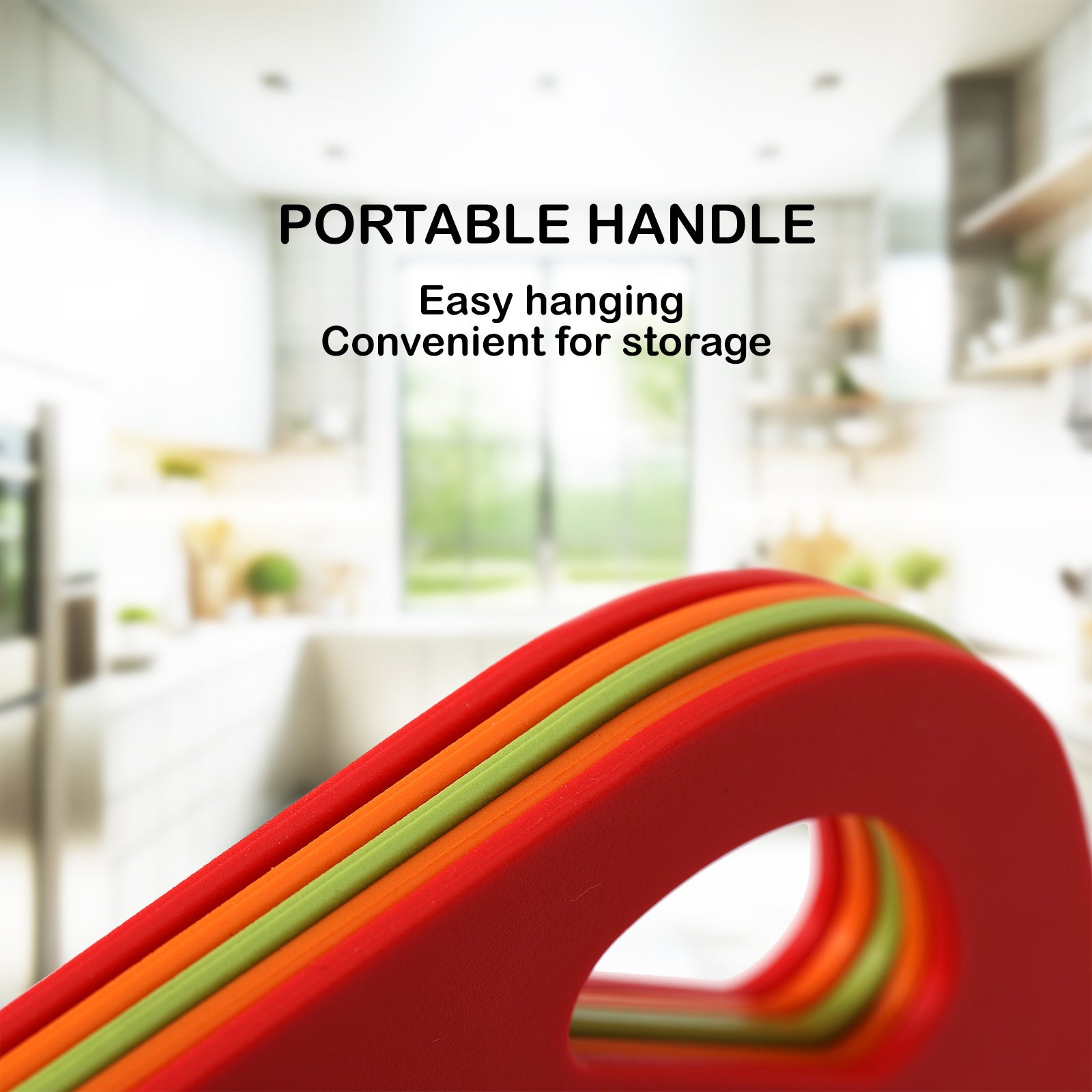 Crafted from TPU material, a true antibacterial powerhouse known for its exceptional flexibility, durability, and minimal odor absorption. It also offers scratch resistance compared to plastic chopping boards.