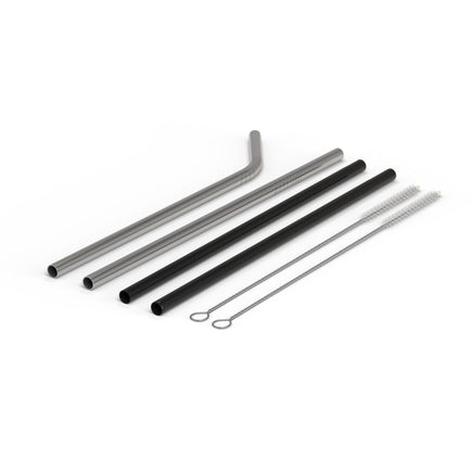 2x Stainless Steel Straws, 2x Plastic Straws, 2x Cleaning Straw Brushes, 1x BPA Free Plastic Lid