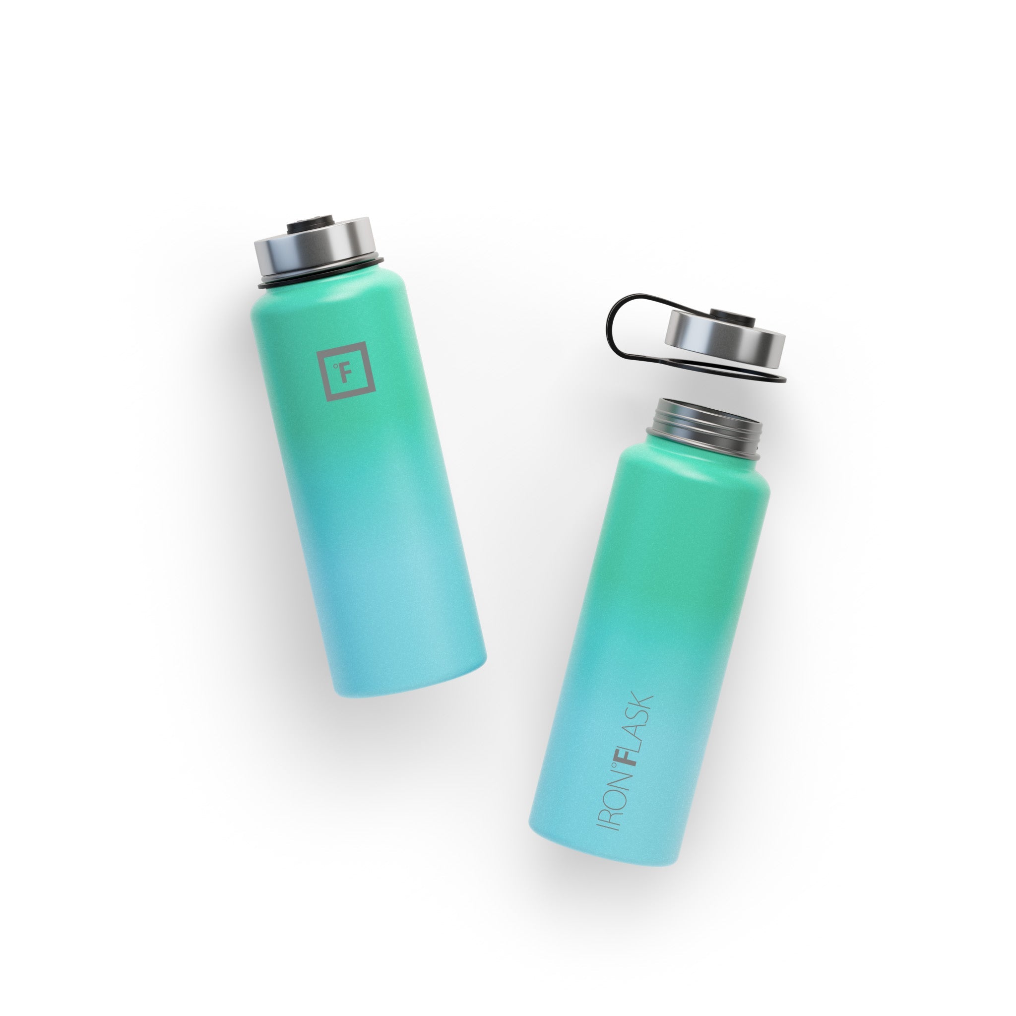 Iron Flask Wide Mouth Bottle with Spout Lid, Sky, 40oz/1200ml. The Iron Flask 40 oz Wide Mouth Water Bottle With Spout Lid is the perfect lightweight companion for running around town, running at the gym, or running the world at the office. With our broad array of colors, you can rock a bottle that reflects your personal style, while the double-walled, vacuum-insulated stainless steel keeps your drinks cold for 24 hours and hot for 12 hours with no sweat. We included a flip lid and a stainless steel screw-on lid apart from the straw lid, so you can be the master of your drinking ways.