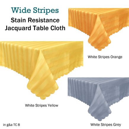 This tablecloth depicts elegance that is ideal for your home, formal events, or any occasion. It features a contemporary stripes jacquard design in bright colour tones that will instantly dress up your dining table. It is made from quality and stain resistant Polyester fabric with easy care properties. 135cm x 180cm Rectangle - 4 - 6 Seaters.
