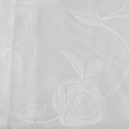 Create a stunning table update for special occasion of everyday use with this Rosa Ivory Jacquard Tablecloth for an ultimate dining experience. The design features a floral Jacquard pattern in soft colour tone that will add decorative touch to your ordinary dining table. It is made from strong and wrinkle resistant Polyester fabric with easy care properties that you can use for many years to come.