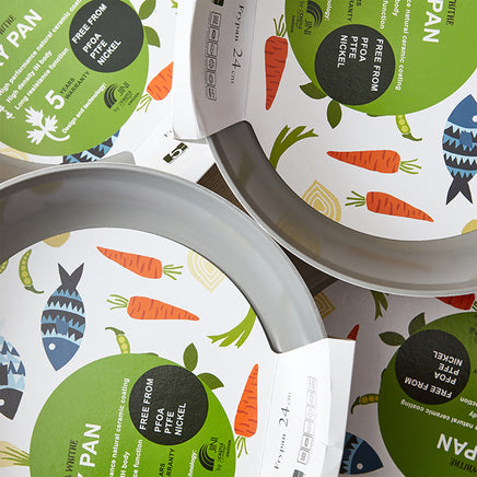 Jiniart Wok Wokpan 28cm Non-Stick Ceramic Induction Ergonomic Round WHITE