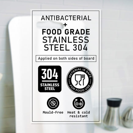 MOM'S STEEL "Antibacterial + Stainless Steel 304" Cutting Board is made in Korea. It is a top trending quality health and wellness product that is hygienic and lifelong. It provides antibacterial on both sides of surfaces for food preparation and presentation.