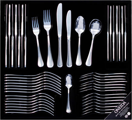 Oneida Barcelona Cutlery Set has a smooth and rounded shape that tapers to a slender shaft, creating a warm and comfortable feel. The handle is tear-drop shaped, perfectly polished and feels great in the hand. Additionally, the material used to make the item is high-quality 18/0 stainless steel. The set is includes 8 x table knife, 8 x table fork, 8 x dessert knife, 8 x dessert fork, 8 x dessert spoon, 8 x euro size teaspoon and 8 x soup spoon.