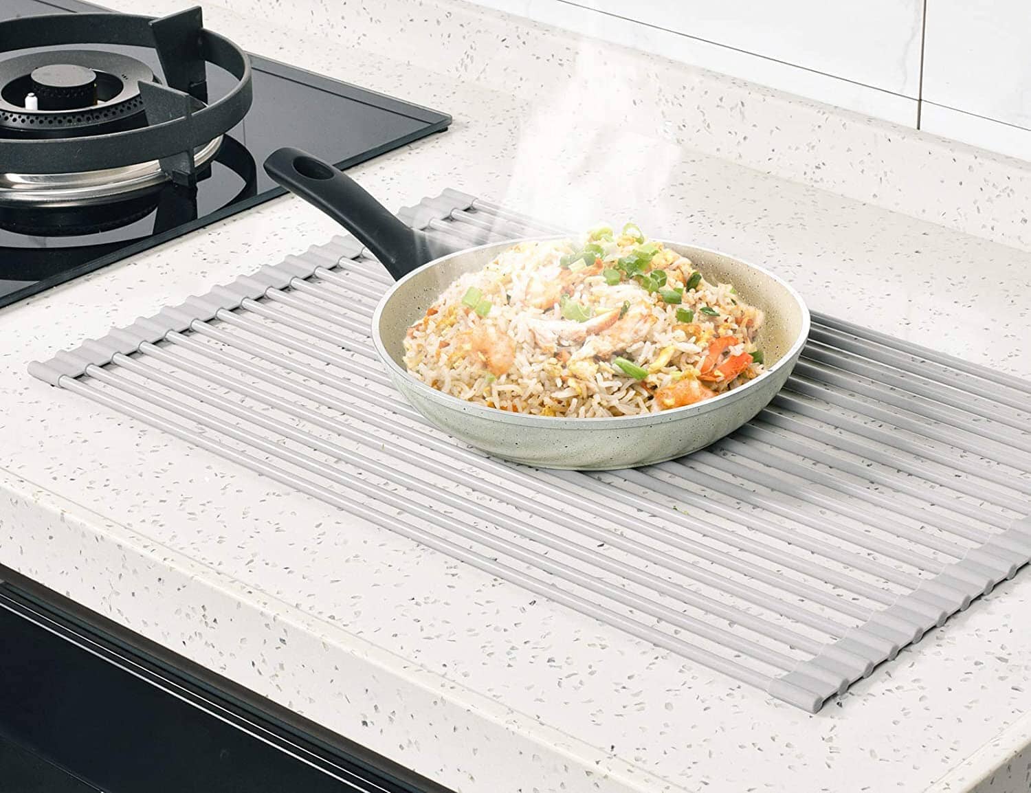 - Resistant to rust, non-slip, durable, glassware friendly, and sturdier than stainless steel racks. Oil-resistant, very easy to clean. Collapsible, and rolls up for easy storage. Welcome to compare.
