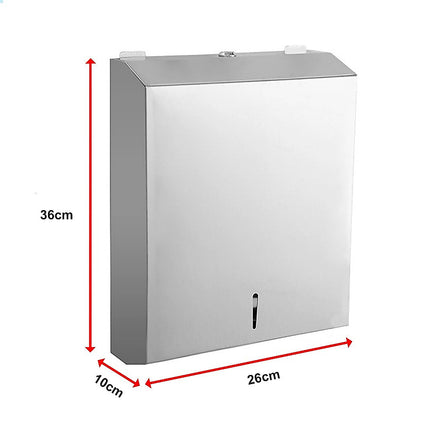 Made from brushed 201 stainless steel, this dispenser is thicker, easy to clean, and resistant to rust, providing long-lasting use. Polished edges and corners ensure hands and tissues are protected from scratches.The wall-mounted design includes all necessary hardware for easy installation.This dispenser accommodates up to 400 c-fold, tri-fold, z-fold, multi-fold, and m-fold paper towels.