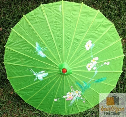 PARASOL UMBRELLA Chinese Japanese Bamboo Flower Pattern Fabric 80cm Diameter - Light Green SALE