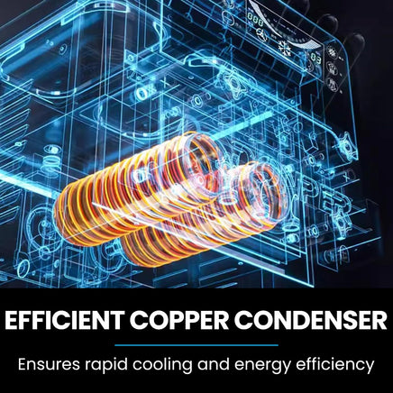 - Copper condenser ensures rapid cooling and energy efficiency