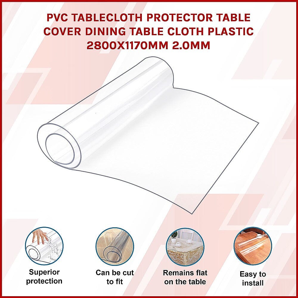 - The PVC material is easy to clean and features a reusable design that allows you to wipe off the plastic tablecloth protector