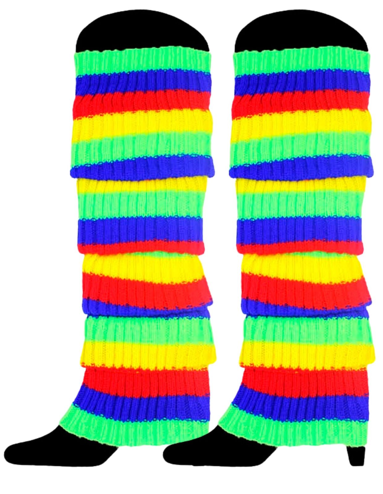 RAINBOW LEG WARMERS Legging High Knitted Womens Neon Party Knit Ankle Socks New
