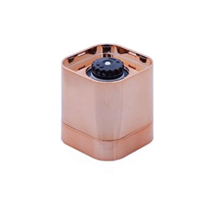 A simple, elegant, glass Salt or Pepper Grinder with a contemporary edge, hosting a rose gold top, a square body , and a rounded base design.