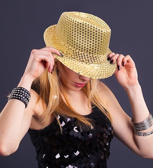 SEQUIN HAT Trilby Fedora Glitter Cap Costume Dance Party Sequinned Accessory New