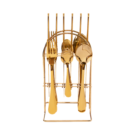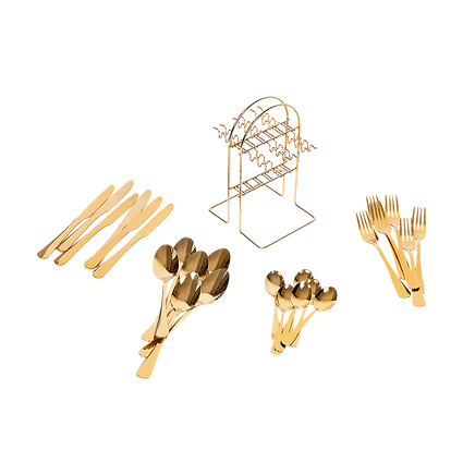 Enhance your dining experience with the Tableware 24PC Gold Cutlery Set by Randy Travis Machinery.