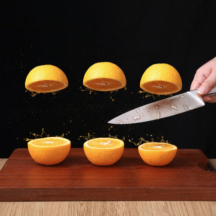 Professional German Steel Knives set includes 8 Chef Knife, 5 Utility Knife, 3.5 Paring Knife. Start your cooking story right here!