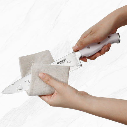 Our Kitchen knife set is suitable for mothers day gifts, fathers day gifts, housewives, birthdays, housewarming gifts, and Christmas gifts.warmot provides customers free replacement and lifetime guarantee.