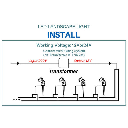 SAFE LOW VOLTAGE OUTDOOR USE: 12V working voltage compatible with most low voltage landscape lighting systems,extra low voltage transformer Required for installation (NOT INCLUDED in this set).