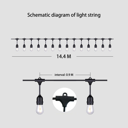 15M Solar Festoon String Lights Kits Globe Outdoor Christmas Party Garden
