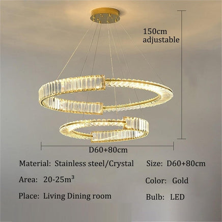 - Ring pendant light dimensions: 80+60cm diameter. The circular ceiling tray is 20cm in diameter. The pendant light has a total length of 150cm and weight approximately 15kg