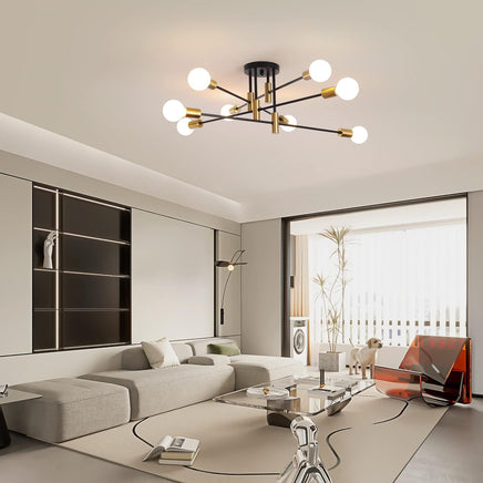 - This modern sputnik chandelier features 8 multi-directional lamp bases and 4 black adjustable arms, allowing you to customize your lighting. The connecting metal arms for installing bulbs are rotatable, so you can easily adjust the light to your desired angle. With a diameter of 81 cm and a fixture height of 29 cm, it's the perfect size for any room. The canopy measures 15cm. (Bulbs not included)