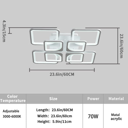 - Transform your living space with this modern LED ceiling light. This two-layer design features 8 square lights, creating a three-dimensional effect with its simple and soft lines. Perfect for any room in your home, from the living room to the bedroom, dining room, and study, this minimalist ceiling lamp is sure to bring a touch of sophistication to your space.