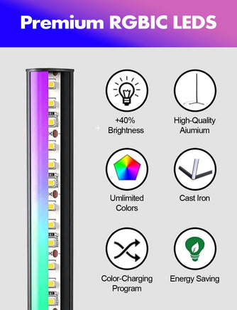 - Unleash your creativity with this Dynamic RGB+IC LED Floor Lamp. Our built-in premium technology increases brightness by 30% compared to traditional lamp beads, and creates stunning segmented colors on a bar. Perfect for any holiday, from Valentine's Day to Easter, this lamp will immerse you in a truly fantastic lighting experience.