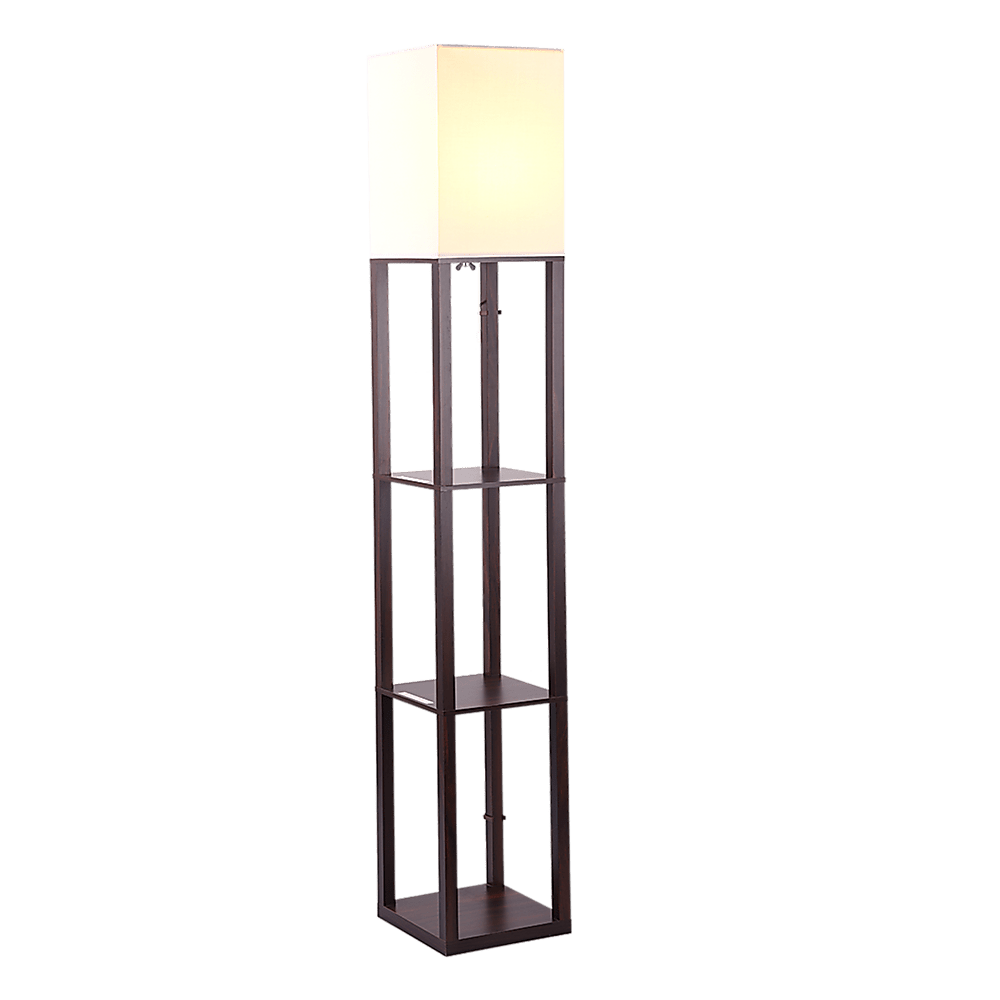 Three shelves underneath display your most treasured belongingsbooks, pottery, photos, mementoes, plants, or other treasures as the light draws your eye to the objects displayed. Both a storage solution and an attractive display, this lamp is as practical as it is beautiful.