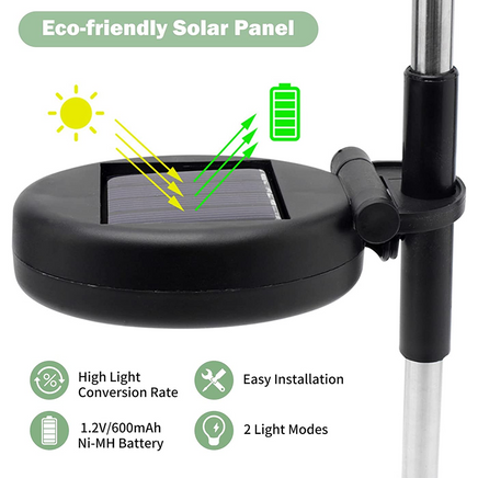 The solar panels convert sunlight into electricity during day time and recharge the battery. At night, the light turns on automatically.