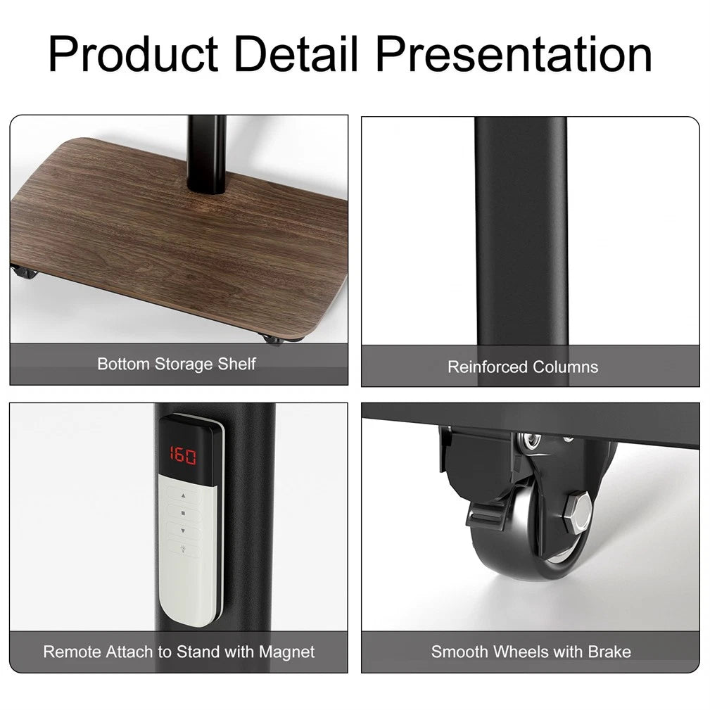 37-75 Inch Electric Height Adjustable Rolling TV Stand - Motorized Floor Mount with Remote Control, Shelf & Lockable Wheels SALE