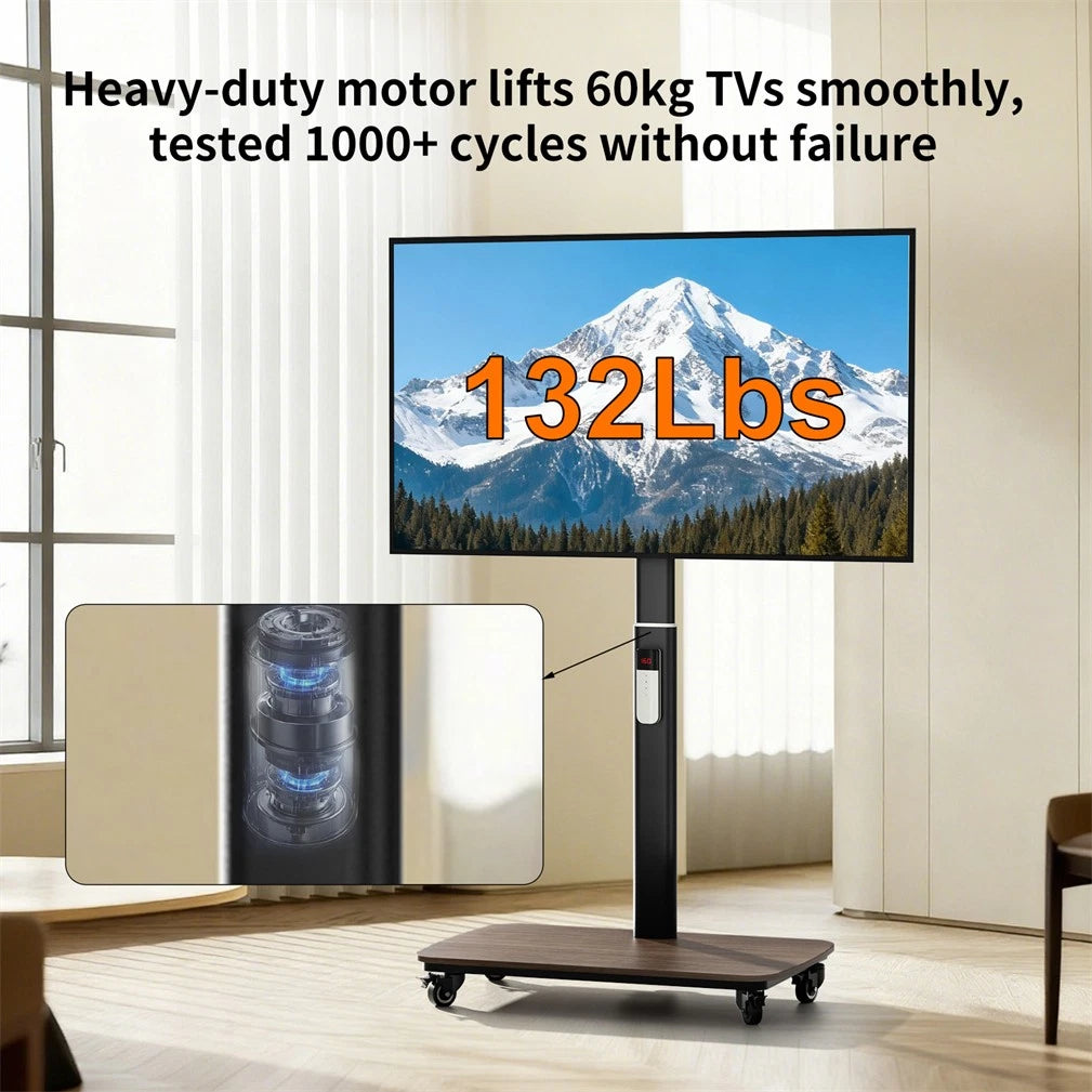 Experience the perfect blend of innovation, functionality, and design with this electric height-adjustable rolling TV stand. Suitable for 37-75 inch LED, LCD, and OLED screens, it supports weights up to 60kg (132 lbs) and is compatible with VESA mounting patterns from 200x200mm to 600x400mm. The sleek oval single-pole design adds a modern touch to any home or office environment.