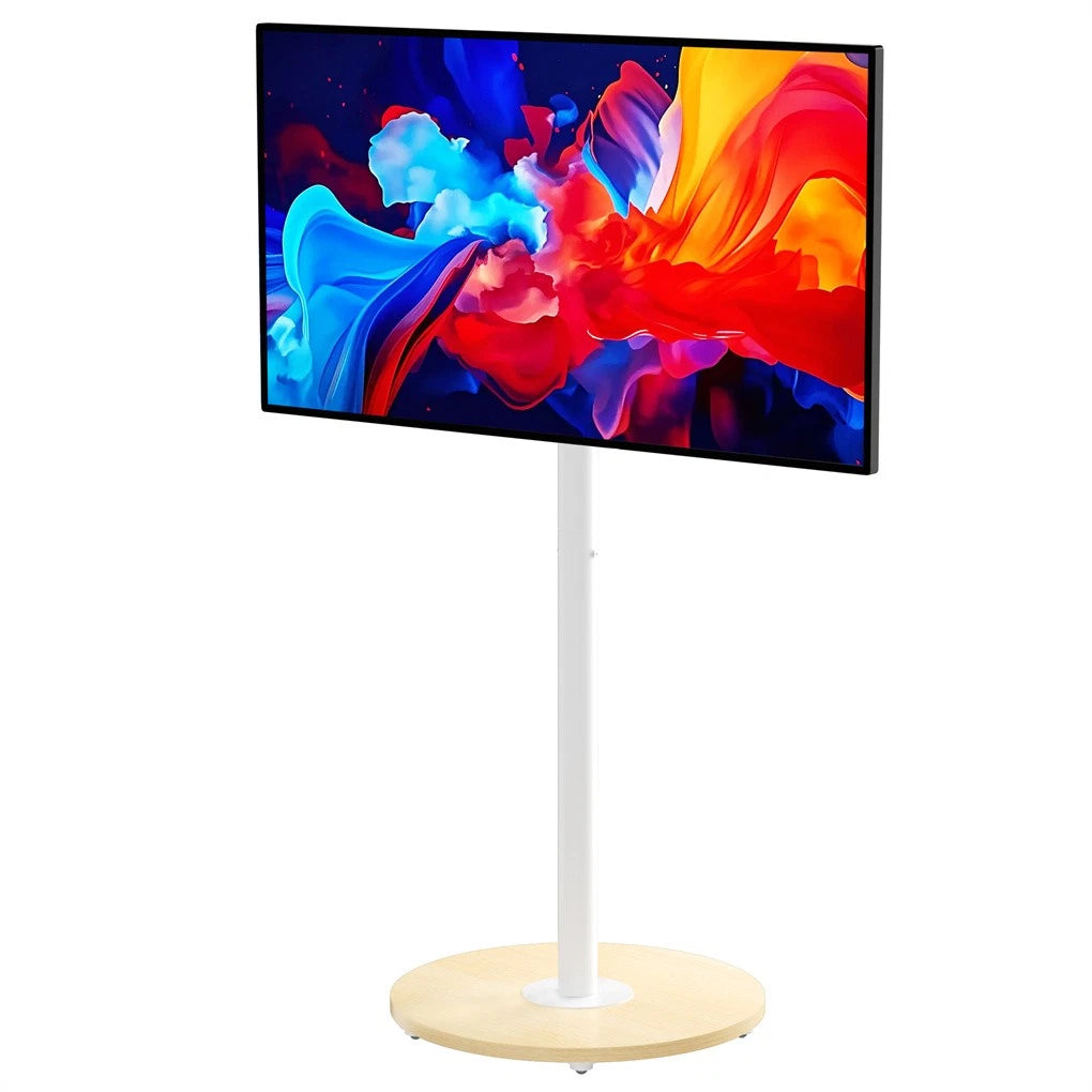 Equipped with concealed rolling caster wheels, the stand moves smoothly and discreetly, allowing easy repositioning without clutter. Its freestanding, no-drill design makes it ideal for rented spaces or flexible layouts. Reinforced steel construction, a thickened base panel, and a solid support pole ensure excellent stability and long-term durability.