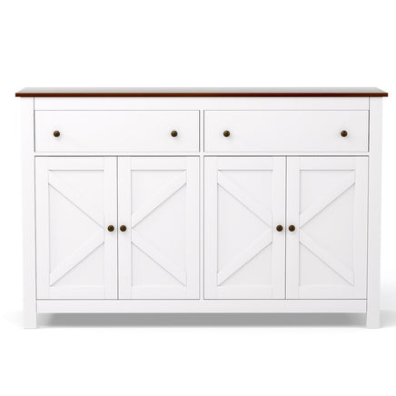 Elevate your home storage with this elegant buffet sideboard. he unique X-frame door design adds a modern aesthetic, while the two spacious cabinets and drawers provide ample room for your dining essentials, books, or decor. Featuring height-adjustable shelves, you can easily customise the space according to your requirements. Silent soft-closing door hinges ensure smooth, noise-free operation, enhancing durability. Built with a sturdy particle board frame and exquisite metal handles, this sideboard is made to last. The anti-tip kit ensures safety, making it perfect for families. Easy to assemble and fits seamlessly in dining rooms, living rooms, or kitchens. Upgrade your space today with this functional and stylish storage solution!