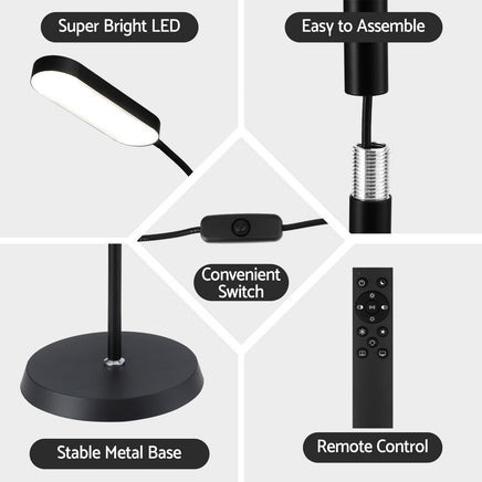 Illuminate your space with the Artiss LED Floor Lamp. This lamp blends a sleek, modern design with powerful functionality, allowing you to create the perfect lighting ambience in any room. Effortlessly customise your light with stepless brightness and multiple colour temperatures to suit any task, whether you're focused on reading, relaxing, or spending time with family. The ultra-flexible 360~ gooseneck lets you precisely direct the light exactly where you need it, while the user-friendly remote control offers wireless convenience from up to 15 metres away. Powered by a reliable SAA adaptor, this energy-efficient and eye-caring lamp provides consistent, flicker-free light all day long. A stable base ensures the lamp remains secure, making it the perfect addition to your home office, living room, or bedroom.